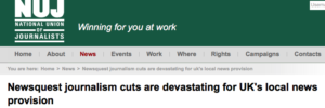Last November it was reported that the NUJ was celebrating union recognition of local democracy reporters, and this came hard on the heels of other alarming headlines. In July it was published that the NMG furlough scheme was a “waiting room for redundancy” with at least 38 journalism jobs at risk, and in March of the previous year the NUJ criticised plans to cut staff in Brighton, South London and North Wales, which was to lead to an overall headcount reduction of six. The worrying nature of this ‘partnership’ has also been highlighted by David Nicholson on Twitter, who is the NUJ’s National Executive Council (NEC) member for Wales.