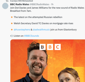 But the station has often hit the headlines for unfortunate reasons. Our journalists have been alone in reporting that Ms Hitt’s predecessor as RW Editor, Colin Paterson, had an unwise affair with the presenter Lucy Owen, and the story about it was included in another critical DS comment concerning RW with the message above the link saying “…the record low listening figures at Radio Wales under it’s (sic) current management (were) amplified this year by criticism from former award winning reporters and presenters”.