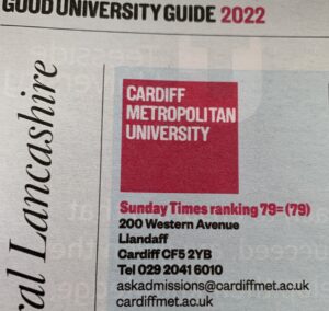 In the advert CMU announced that it “was recently awarded the title of Welsh University of the Year 2021 by The Times and The Sunday Times”.