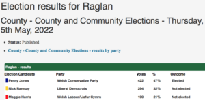 For 14 years Mr Ramsay was a member of the Senedd Cymru/Welsh Parliament (SC/WP), or before that the Welsh Assembly (WA), first as a Welsh Conservative (WC), then not affiliated to any party, but he has now failed to be elected to Monmouthshire council representing the Welsh Liberal Democrats (WLD), for the Raglan ward.
