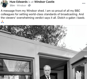 Mr Edwards has announced on Facebook (FB): “A message from my Windsor shed. I am so proud of all my BBC colleges for setting world-class standards of broadcasting. And the viewers overwhelming verdict (!) says it all. Diolch o galon i bawb.”