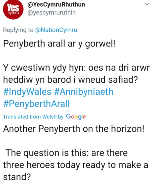 This inflammatory tweet in Welsh and English stated: “Another Penyberth on the horizon!