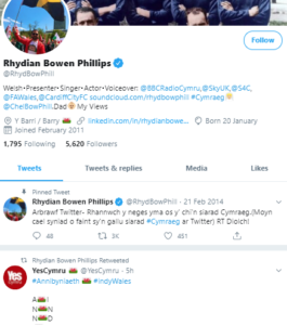 YC has also been endorsed by controversial BBC Cymru Wales Radio Cymru (BBC CW RC) presenter Rhydian Bowen Phillips.