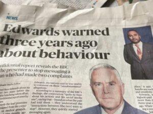 Another declared: “Davie’s (Director General [DG] Tim Davie’s) leadership credentials are in the spotlight. First the Lineker fiasco and now the Edwards’ public relations car crash. These episodes have done immeasurable damage to the BBC and both could have been avoided by immediate intervention”.
