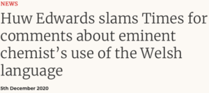 After his diatribe opposing Mr Hastings, contentious Nation.Cymru (NC) published a ‘news’ piece saying: “Huw Edwards slams former Telegraph editor for anti-Welsh language article”.