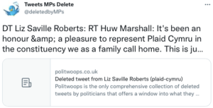 In a deleted tweet by the House of Commons group leader for Plaid Cymru (PC), and Dwyfor Meirionnydd MP Liz Saville Roberts on April 1, which was ‘re-tweeted’ by him, he said: “It’s been an honour & a pleasure to represent Plaid Cymru in the constituency we as a family call home…”.