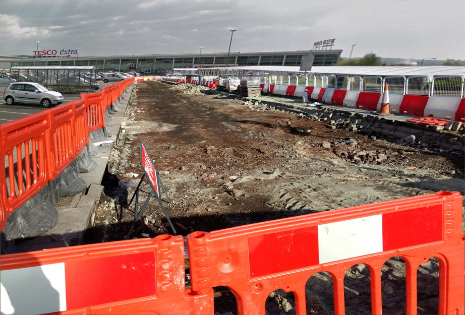 The full-scale model of the Swansea City Centre roadworks will initially be placed in the Tesco extra car park for a three month period but if it is sufficiently ruinous financially, Arts Council of Wales will fund it for a further six months.