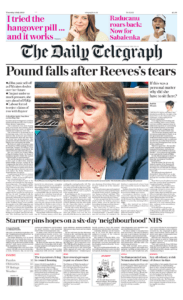 In the wake of it The Economist reported about her boss, Sir Keir Starmer: ‘After a  brutal week, in which a backbench rebellion forced him to abandon welfare cuts and his chancellor, Rachel Reeves, was reduced to tears in Parliament, Sir Keir wants people to look beyond the drama and judge him by what he’s achieved. We have. The verdict, so far, is that he is making dreadfully slow progress, which helps explain why Labour’s support has fallen from 34% last July to 24%, five points behind Reform UK”.