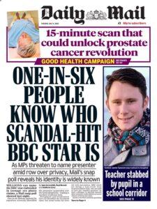 As the Daily Mail reports: “ONE-IN-SIX PEOPLE KNOW WHO SCANDAL-HIT BBC STAR IS”.
