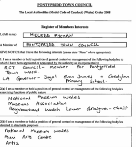 Yet this does not appear in Ms Fychan’s register of interests at the WP/SC because only PRESENT ones are included (although it could be argued that past interests are just as relevant).