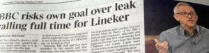 Yesterday Mr Lineker made front page headlines, with the Mail on Sunday (MoS) declaring: “Why it’s all kicking off between Lineker and BBC”.