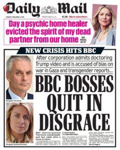 The fallout over the shock resignation of the beleaguered head of the BBC Tim Davie (who has faced a string of scandals) continues, with all but one of the UK newspapers today leading on the extraordinary controversy, highlighting how The Eye have been calling for him to go for months.