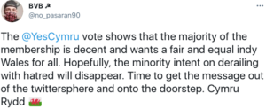 The alarming comments on Twitter highlight disclosures by our journalists, that the independence organisation YesCymru (YC) has been torn apart by internal strife.