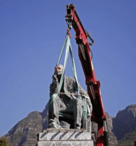 The statue was a fixture on the steps of the University of Cape Town (UCT) but was first boarded up, then removed altogether.