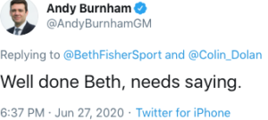 Andy Burnham said on Twitter: “Well done Beth, needs saying”.