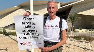 Others though, HAVE gone to Qatar, but for reasons other than those held by some Welsh football fans – to protest about its severe laws. The Lesbian, Gay, Bisexual and Transgender (LGBT) campaigner Peter Tatchell demonstrated against them in Doha, where he held up a placard which read: “Qatar arrests, jails and subjects LGBTs to ‘conversion’”.