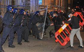 After the demonstration against the Police, Crime, Sentencing and Courts Bill, a police station was attacked, 21 officers were injured and police vehicles set alight, with Avon and Somerset Police arresting eight men and saying pictures of “many more” individuals would be released.