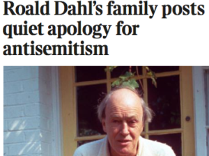 This, for example was WalesOnline: “Roald Dahl’s family has apologised for the author’s “incomprehensible” anti-Semitic comments.