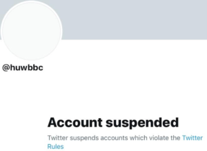 The account @huwbbc was discontinued, with officials saying: “Twitter suspends accounts which violate the Twitter Rules”.