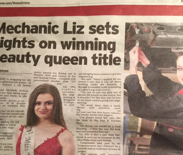 This report had a wonderful intro worthy of our UK tabloid newspapers from years gone by and obviously written by a man:  “A mechanic is swapping her oily overalls for glittering ball gowns – in a bid to become a top beauty queen”.