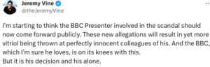 The broadcaster Jeremy Vine has written online that the latest allegations would result in “yet more vitriol being thrown at perfectly innocent colleagues” at the BBC.