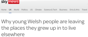 This was Sky’s ‘story’ last week: “More than half of Wales’s local authorities lost more people aged between 18 and 29 than they gained, recent figures show”.