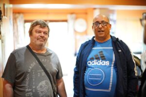 The photograph on Facebook (FB) shows Ellis Sherwood and Mike O’Brien who are now in their fifties, but the pair were young men, when they were wrongly convicted of the killing.