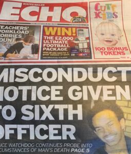 After an official inquiry into the handling by the police of Mohamud Hassan’s death in Cardiff, a misconduct notice was served on a sixth officer, which was ‘revealed’ as front page news in the South Wales Echo with a detailed 22 paragraph ‘report’ on page three.