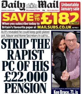 The front page headline of the Daily Mail last week was: “Strip the rapist PC of his £222,000 pension”.