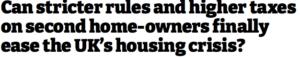 The academic investigation was featured in the Western Mail with a report on it saying: ‘Increasing taxes on second homes is just one recommendation put forward in a new report commissioned by the Welsh Government to look at a so-called “second homes crisis” in Wales’.