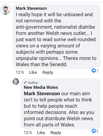 He said on Twitter: “I really hope it will be unbiased and not rammed with the anti-government nationalist diatribe from another Welsh news outlet…” and Mr Marshall has answered: “Our main aim isn’t to tell people what to think…”.