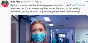 Mind you, it is clear that ITV Cymru Wales have spotted her immense talent, and tried to hold on to Ellie by giving her the health brief.