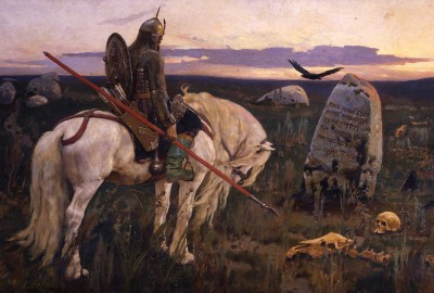 A vityaz (Russian knight) comes to a fork in the road and sees a menhir with an inscription that reads: “If you ride to the left, you will lose your horse, if you ride to the right, you will lose your head“.