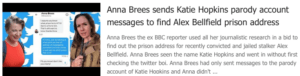 Ms Brees, though, has proclaimed: “…I’m truly horrified by what has happened to him…(Belfield)“, and sent the request asking for details of Belfield’s address.