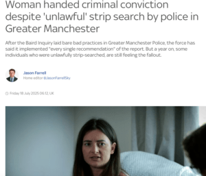 This damning comment when the young woman in question received a criminal conviction, was highlighted by an inquiry into the terrible issue, and comes after the use of the strip search by another police force which has also been highly controversial.