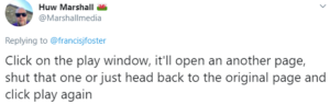 More recently on Twitter, Mr Marshall instructed a follower how to watch an unlawful transmission of the West Ham v Wolves football match, by telling him:  “Click on the play window.”.