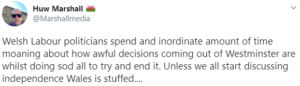 Mr Marshall has secured pledges of huge amounts of money from the public for ‘New Media Wales (NMW)’ but has now used Twitter to attack Nia Griffith, a leading Labour MP in Wales who is a shadow UK Government minister, and declared:  “Unless we all start discussing independence Wales is stuffed…”.
