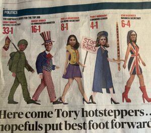 Meanwhile in her previous jobs at defence, and in Brexit negotiations, she has been accused of going AWOL all the time, and not understanding details. David (Baron) Frost proclaimed: “She was my deputy notionally – rather than really – in the Brexit…I felt that she…wasn’t always visible. Sometimes I didn’t even know where she was”.