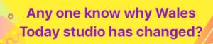 In the Facebook (FB) group ‘BBC Wales pictures/Lluniau BBC Cymru’ John Waldron wrote: “Any one know why Wales Today studio has changed?”.