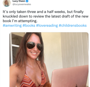 In one social media post the contentious BBC Cymru Wales Today (WT), and X-Ray presenter Lucy Owen, showed us how she wore sunglasses to review the latest draft of her new book, and in another she posed in goggles, as she described taking an “Early morning swim.”.