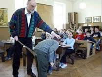 A biology teacher used to beat boys on their behinds using a large pair of wooden protractors with the word ‘IDIOT’ scrawled on the instrument backwards in chalk. After the assault took place the victim would have ‘IDIOT’ written in chalk the right way round on his backside.