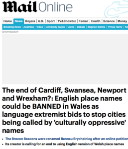 The MailOnline (it had to be, didn’t it?) was outraged, and screamed: “All English place names could be erased from Wales under a campaign launched by a language extremist.