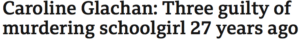 It was seemingly very important we were told that: “Two men and a woman have been found guilty of the murder of a schoolgirl in West Dunbartonshire more than 27 years ago. The “BREAKING NEWS” report added excitedly: “The body of Caroline Glachan, 14, was discovered on the banks of the River Leven in Renton on 25 August 1996”.