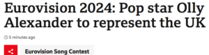 Two days later we were given as “BREAKING NEWS” the latest information about the UK’s entry for Eurovision. It was seemingly vitally important that we were told: “Pop star Olly Alexander will represent the United Kingdom at next year’s Eurovision Song Contest in Sweden”. The ‘BREAKING NEWS‘ report continued excitedly: “The former Years and Years frontman will hope to improve on the UK’s disappointing performance this year, when Mae Muller came second to last”.