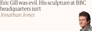 Mr Jones paid tribute to the genius of Mr Gill, with the headline above his Guardian article being: “Eric Gill was evil. His sculpture at BBC headquarters isn’t”.
